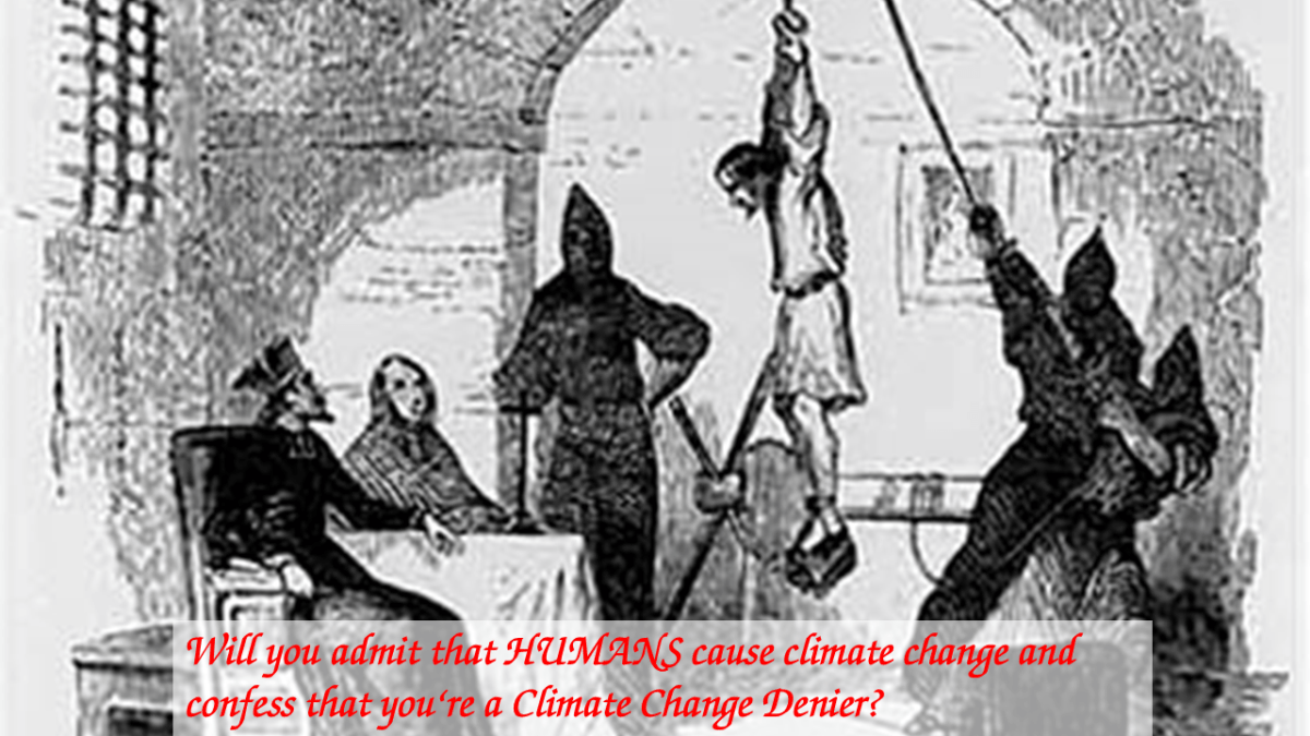 Wie Sie sehen, sind die Kultisten, die im Rahmen der Inquisition tausende Menschen gefoltert und ermordet haben, nicht einfach verschwunden. Sie haben sich eine neue Spielwiese gesucht, ihre Aggression und Bösartigkeit auf die Lebensverhältnisse „der Menschen“ gerichtet, die sie als „zu gut“ angesehen haben, weshalb es notwendig war, per Klimawandel-Hoax einen Großangriff auf die Lebensgrundlagen moderner, westlicher, industrieller Gesellschaften zu starten, um den Lebensstandard „der Menschen“ zu reduzieren. Die Zerstörung von Leben erfolgt nicht mehr direkt und per Folter, sie erfolgt indirekt über eine Klimafolter für alle, die wirtschaftlich prosperieren und Wohlstand schaffen wollen, um den Lebensstandard für alle zu verbessern.