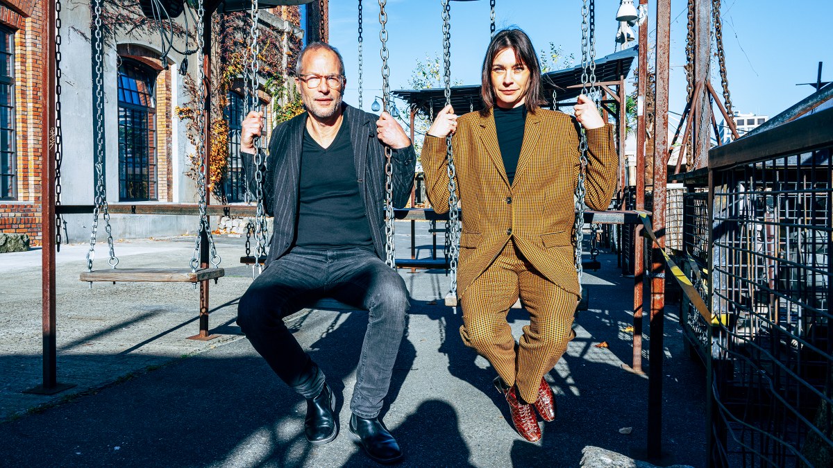 Das Treffen findet in den Räumen von X-Verleih am Spreeufer in Berlin-Kreuzberg statt. Neben unserem Tisch stehen Reklameschilder und Requisiten der Serie Babylon Berlin. Von einem riesigen Pappaufsteller für Der Held vom Bahnhof Friedrichstraße schaut Hauptdarsteller Charly Hübner rüber. Die Verfilmung von Maxim Leos Roman kommt am 11. Dezember in die Kinos.Christiane Paul und Maxim Leo kennen sich schon länger, sie sind per Du.