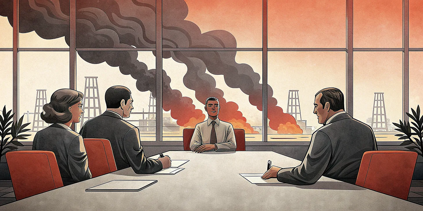 Zusammen beschreiben sie etwas, das größer ist als die Korruption einer einzelnen Regierung. Sie beschreiben eine institutionelle Architektur – ein sich selbst tragendes System, in dem Geld aus fossilen Brennstoffen die Thinktanks finanziert, die die Politik schreiben, die die Regierung besetzt, die die Kriege beginnt, die die Märkte erweitern, die die Gewinne generieren, die die Thinktanks finanzieren.