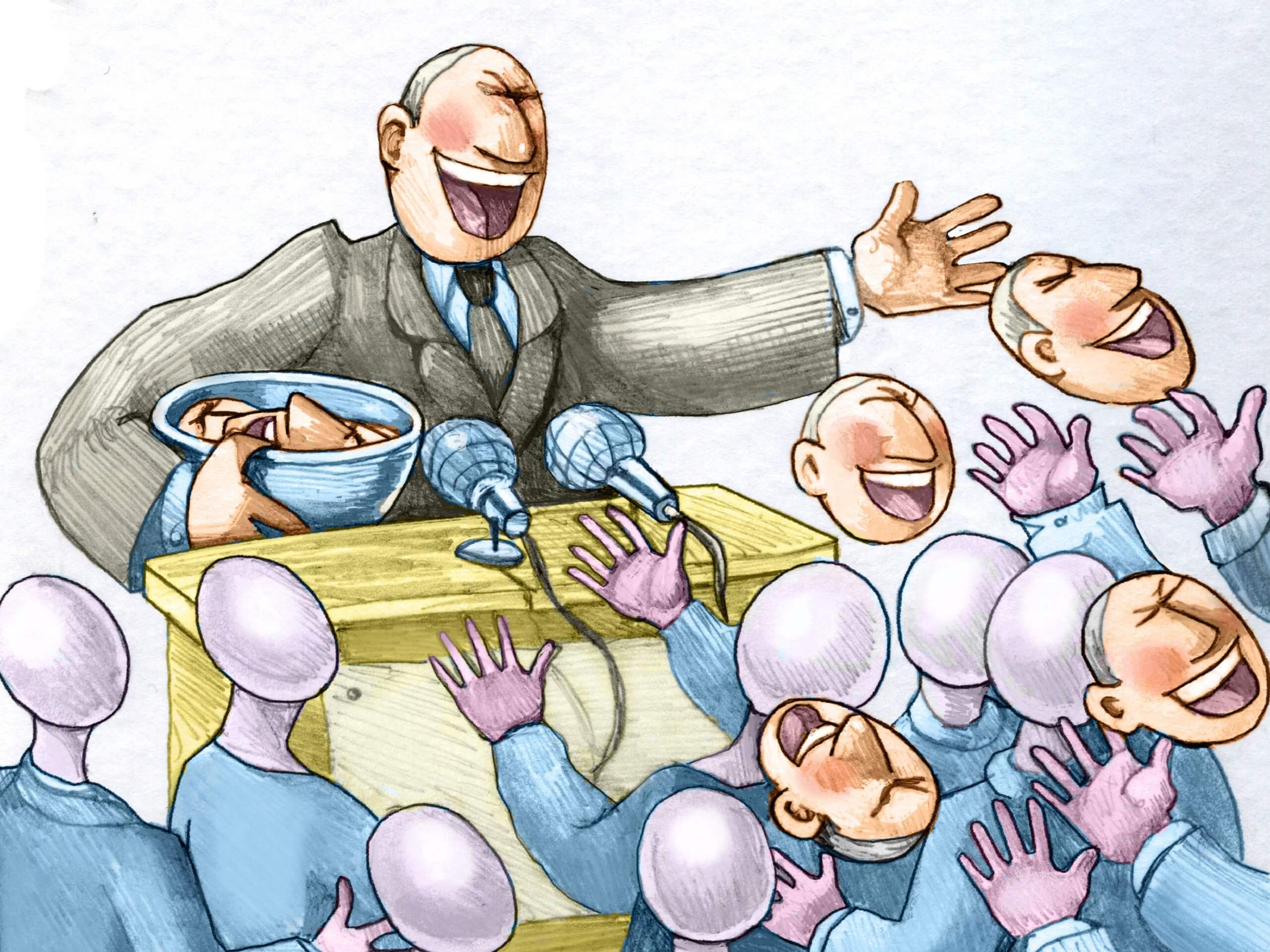 Der Trick funktioniert, wie schon Le Bon erkannte, allerdings nur, solange die Menschen nicht mit gegenläufigen Botschaften und Meinungen konfrontiert werden. Einer der Gründe, warum Goebbels selbst den Empfang von ausländischen Radiosendern unter Strafe gestellt wurde. Und einer der Gründe, warum die rot-grünen Ideologen heute mit allen Mitteln die alternativen Medien bekämpfen – von Konto-Kündigungen bis zu Dauer-Diffamierung – und es in ihren Sendungen und Talkshows tunlichst meiden, kritische Stimmen zu Wort kommen zu lassen. Bis auf Alibi-Handlungen mit Feigenblatt-Charakter, wie gelegentlichem, notgedrungenem Einladen von AfD-Politikern, die aber nur dem Ziel der Vorführung dienen und in denen diese keine fairen Bedingungen vorfinden, sondern eine Wand von massiven Kritikern – so als ob im Fußball ein Einzelner gegen eine ganze Mannschaft mitsamt Schiedsrichter spielen müsste.