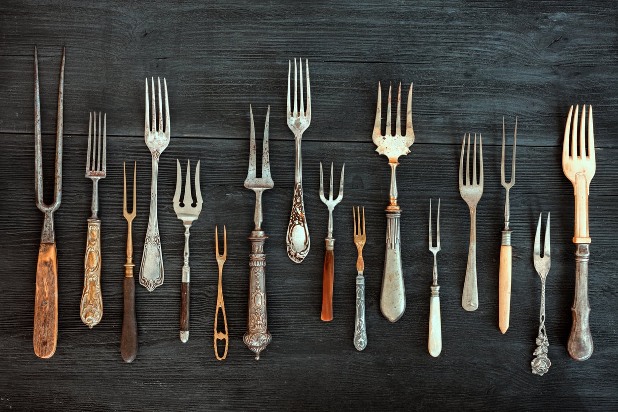 Aber in ganz Europa war ein Wandel im Gange. Gabeln wurden nicht mehr nur als praktisches Hilfsmittel angesehen, sondern als Symbol für Sauberkeit und Raffinesse. In Frankreich spiegelten sie die höfische Höflichkeit wider. In Deutschland verbreiteten sich im 18. und 19. Jahrhundert Spezialgabeln für Brot, Eingelegtes, Eiscreme und Fisch. Und in England wurde die Verwendung der Gabel schließlich zu einem Klassenmerkmal: Die „richtige“ Art, sie zu halten, unterschied die Höflichen von den Ungehobelten.