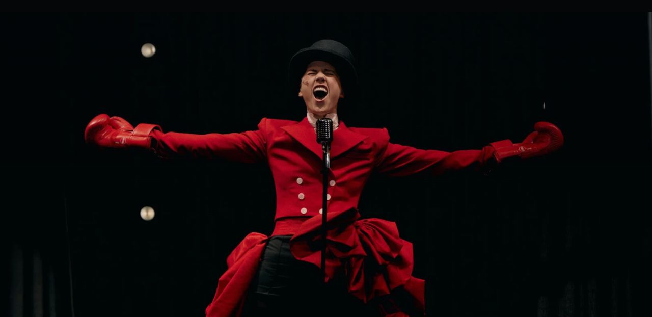 Die erste Szene handelte von der Geburt der Schauspielerin. Diese wurde wie ein Spektakel inszeniert. Unter einem langen Tüllrock zog die Schauspielerin ein rotes Knäuel hervor. Die kleine Irina war geboren! Man hört kein „oh wie süß“ oder „ganz der Mutter ähnlich“, sondern laute Musik.