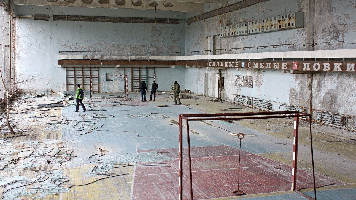 Touristen in der Turnhalle: Pripyat war eine sozialistische Musterstadt