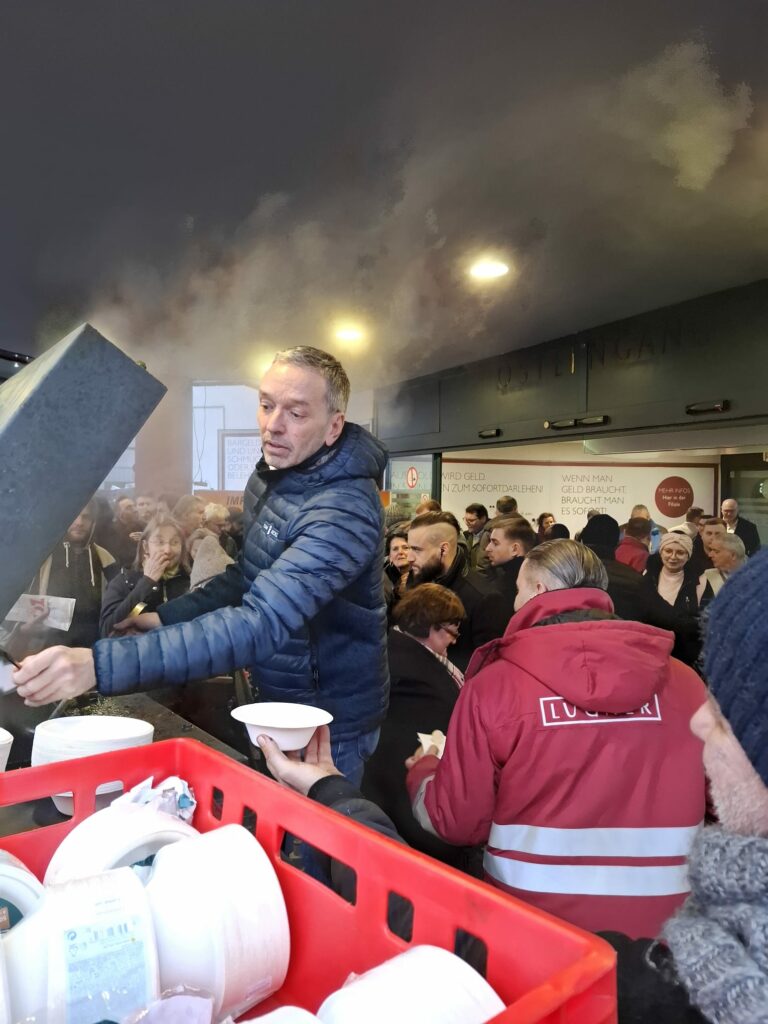 Gedränge bei der Gulasch-Kanone, wo Herbert Kickl selbst das Essen verteilte.