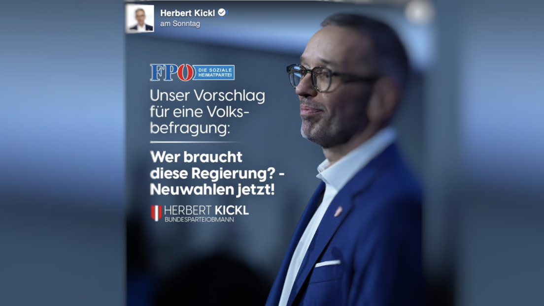 FPÖ-Chef Herbert Kickl verschärft seine Kritik an der Bundesregierung und fordert offen Neuwahlen. In einem Facebook-Beitrag am Sonntag stellt er der aktuellen Koalition ein schlechtes Zeugnis aus und spricht ihr den Rückhalt in der Bevölkerung ab. Seine zentrale Botschaft fasst er in einem Satz zusammen: Die wichtigste Form der Volksbefragung seien Neuwahlen.
