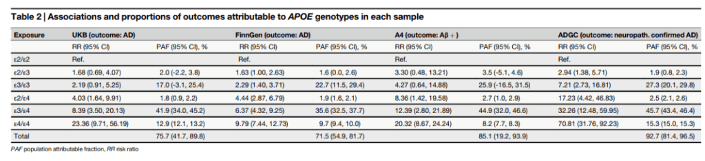 „Our findings, spanning several large population-based and case-control datasets, consistently indicate that if interventions could eliminate the detrimental effects of ε3 and ε4 carriage, we could expect to prevent most AD and a large proportion of all dementia.