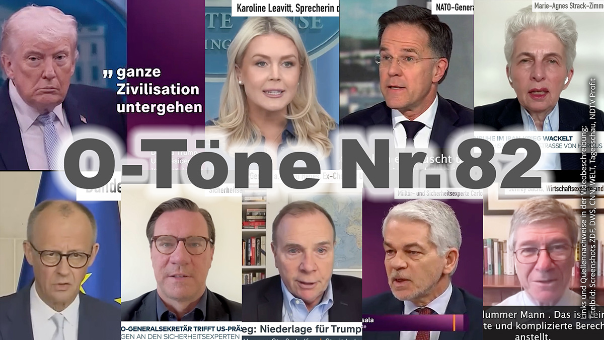 US-Präsident Donald Trump will das Zwischenergebnis seines Iran-Abenteuers, das gemessen am Aufwand eher bescheiden aussieht, als einen großen Sieg verkaufen. Zugleich wirft er den europäischen NATO-Partnern ein „Versagen“ vor, weil sich diese nicht in den Konflikt einmischen wollten, und droht sogar mit einem NATO-Austritt. Eine neue Ausgabe der O-Töne. Von Valeri Schiller.