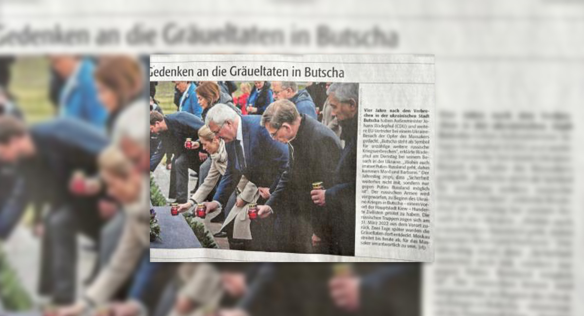 Neben dem oben abgebildeten Foto berichtet die Regionalzeitung Die Rheinpfalz heute: „Butscha steht als Symbol für unzählige weitere russische Kriegsverbrechen“, erklärte Wadephul bei seinem Besuch in der Ukraine. Und weiter: „Wohin auch immer Putins Russland geht, dahin kommen Mord und Barbarei“. So tönen die Unions-Christen in Deutschland seit 1949, seit Anfang der Existenz der Bundesrepublik Deutschland. Vermutlich haben sie sich sogar seit 1945 so geäußert und konnten dabei nahtlos auf den Tiraden der Nationalsozialisten gegen die Marxisten aufbauen. Albrecht Müller.