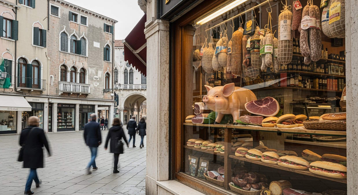In Padua, in the beautiful Piazza dei Signori, a new mortadella shop proudly displays a pink plastic pig in its window. A symbol of Italian culinary tradition, of our freedom to eat what we want.