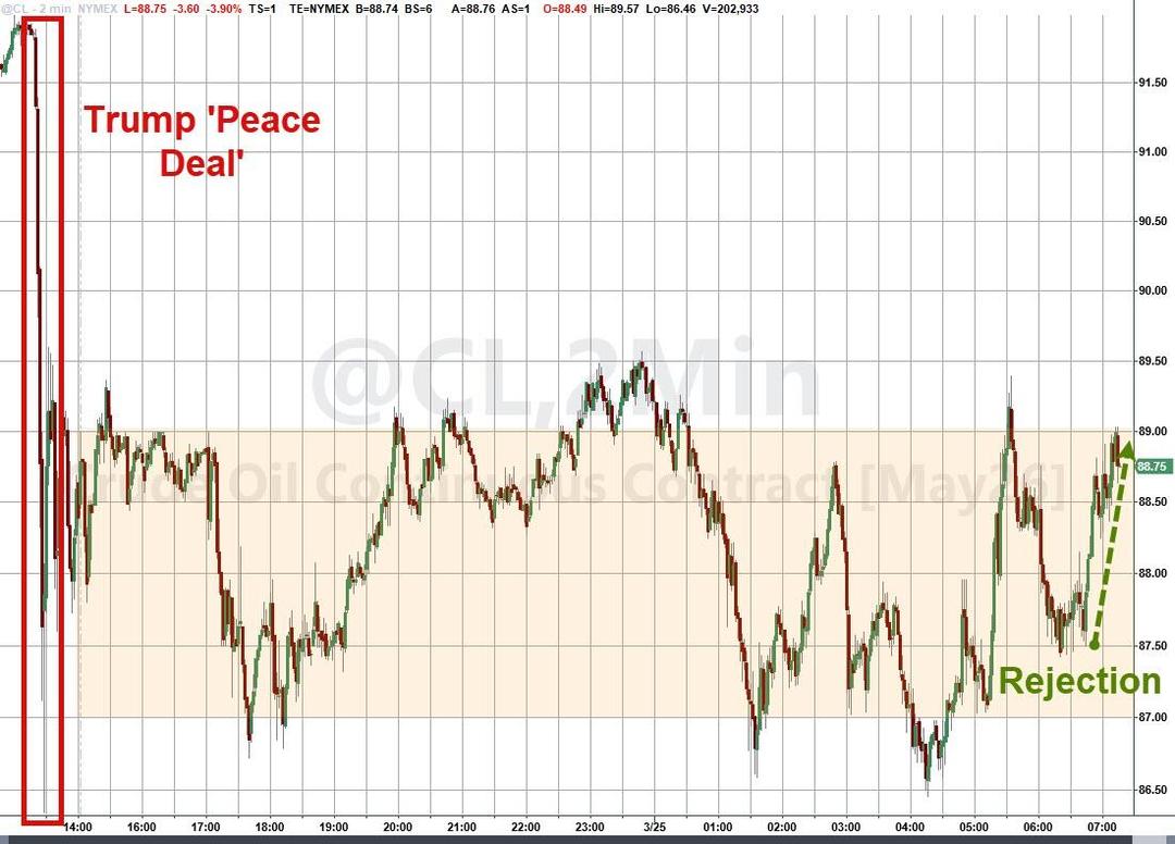 „Die Erfolgsaussichten bleiben gering, da der Iran und die USA maximalistische Forderungen stellen, die für die jeweils andere Seite inakzeptabel sind, so die Vermittler“, fährt das WSJ fort. „Doch während iranische Staatsmedien berichteten, Teheran habe den US-Vorschlag zur Beendigung des Krieges abgelehnt, höre man dennoch zu, während die Vermittler versuchen, einen Kompromissformulierung auszuarbeiten, die zumindest die Tür für ein Treffen beider Seiten in den nächsten Tagen öffnen würde, sagten die Vermittler.“ Die Aktien reagierten kurzzeitig positiv auf die Schlagzeile.