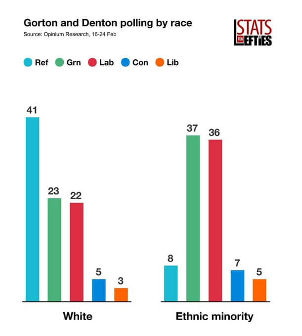 Gorton ist ein typisches Ergebnis von Zuzug, während Denton ein Überrest aus Arbeiter-Britannien ist, voller „working-class Brits“, die in der Vergangenheit stramm zu Labour standen und Labour gewählt haben.