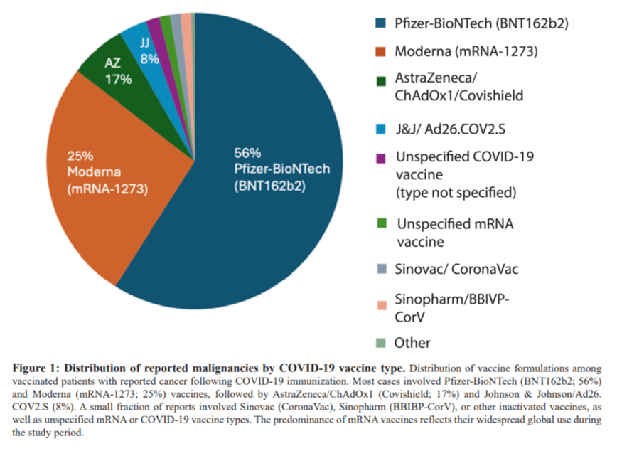 Mindestens 71% der Krebserkrankungen werden für modRNA-Shots berichtet, eine Häufung von Fällen, die in normalen Zeiten, also in Zeiten, in denen Überwachungsbehörden und Polit-Gangster nicht von Pharmafia gekauft sind, dazu führen, dass modRNA-Spritzbrühen vom Markt genommen werden, um sicherzustellen, dass es sich bei der oben gezeigten Auffälligkeit um Zufall, nicht um Kausalität handelt.