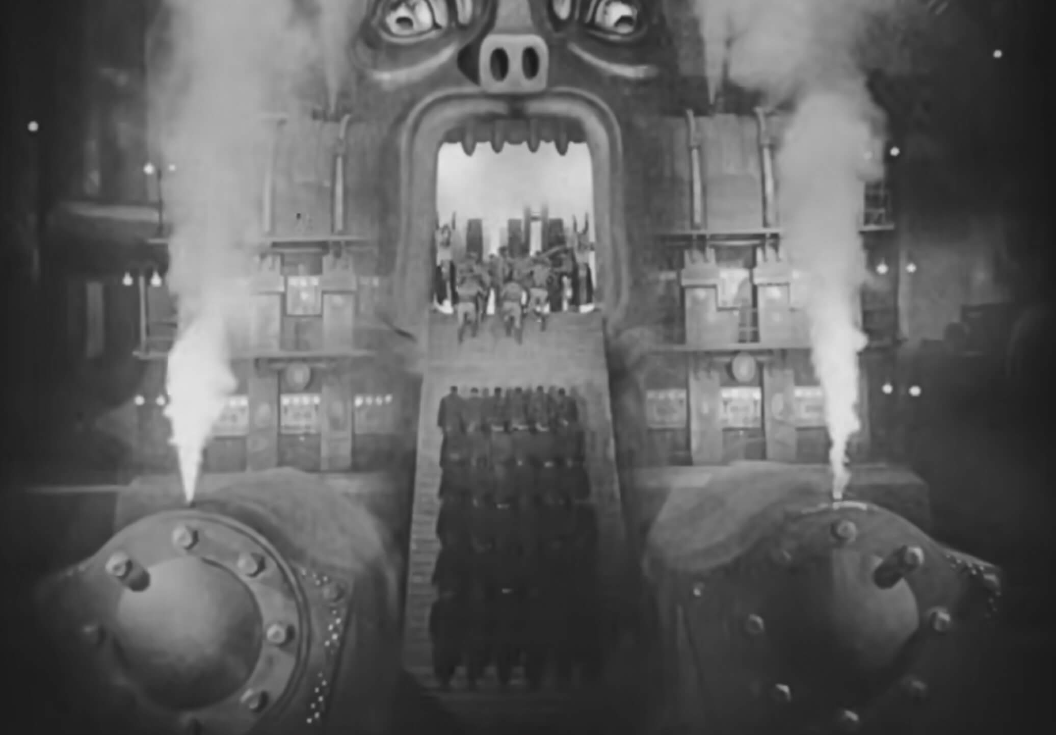 Diese auch heute noch futuristisch anmutende Stadt, die ihre Wolkenkratzer mitsamt den Übergängen in schwindelerregenden Höhen gen Himmel reckt, lebt. Aber sie lebt nicht durch Menschen. Sie lebt durch Maschinen. Das Herz von Metropolis schlägt längst, lange bevor der berühmte Satz vom Mittler fällt. Die Maschinen sind nicht bloß Werkzeuge, sie sind Organismus, Kreislauf, Puls, Schrittmacher. Die zahlreichen Arbeiter im Untergrund sind nicht das Herz der Stadt, sie sind ihr Brennstoff. Er‑Schöpfung ist hier kein Wortspiel, sondern eine präzise Beschreibung: Die Lebensenergie fließt von unten nach oben, von Körpern in Apparate, von Händen in Regler, in Zahnräder. Je weiter man schaut, desto deutlicher wird, dass der Film weniger eine abgeschlossene Erzählung ist als ein offenes System, das sich mit jeder Epoche neu verschaltet. Was einst als Zukunftsvision gedacht war, liegt heute seltsam frei – nicht als Warnung per se, sondern als freigelegte Struktur.