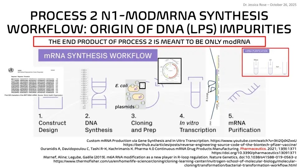 Und bei Biontech ist bekannt, dass diese Verunreinigungen bleiben und bekannt, dass diese Verunreinigungen bleiben, weil ein ungeeignetes Enzym genutzt wird, um die RNA-DNA-Hybride und die Junk-DNA zu entfernen, wie Rose zeigen kann. Und wenn man es bei Biontech weiß, dann weiß man es auch bei Pfizer und bei Moderna. Eine absichtliche, eine billigend in Kauf genommene Verunreinigung, der zwangsläufig eine Schädigung von Millionen Bürger nachfolgen muss.
