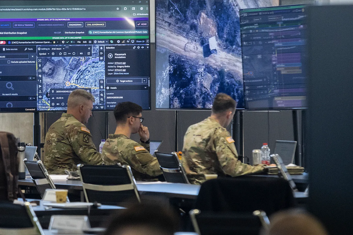 Den Quellen zufolge sitzt ein Vertreter von Palantir im Operationsraum des CMCC, wo Hilfskonvois und Verteilungen innerhalb Gazas per Drohnenüberwachung verfolgt werden. Der Vertreter speist Konvoi- und Verteilungsdaten in Palantirs Systeme ein.