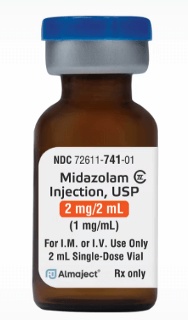 Midazolam (Benzodiazepine), ein Sedativ, das in hoher Dosierung als Gift wirkt, gegen Angstzustände und bei Agitation, aufgrund von Atembeschwerden,