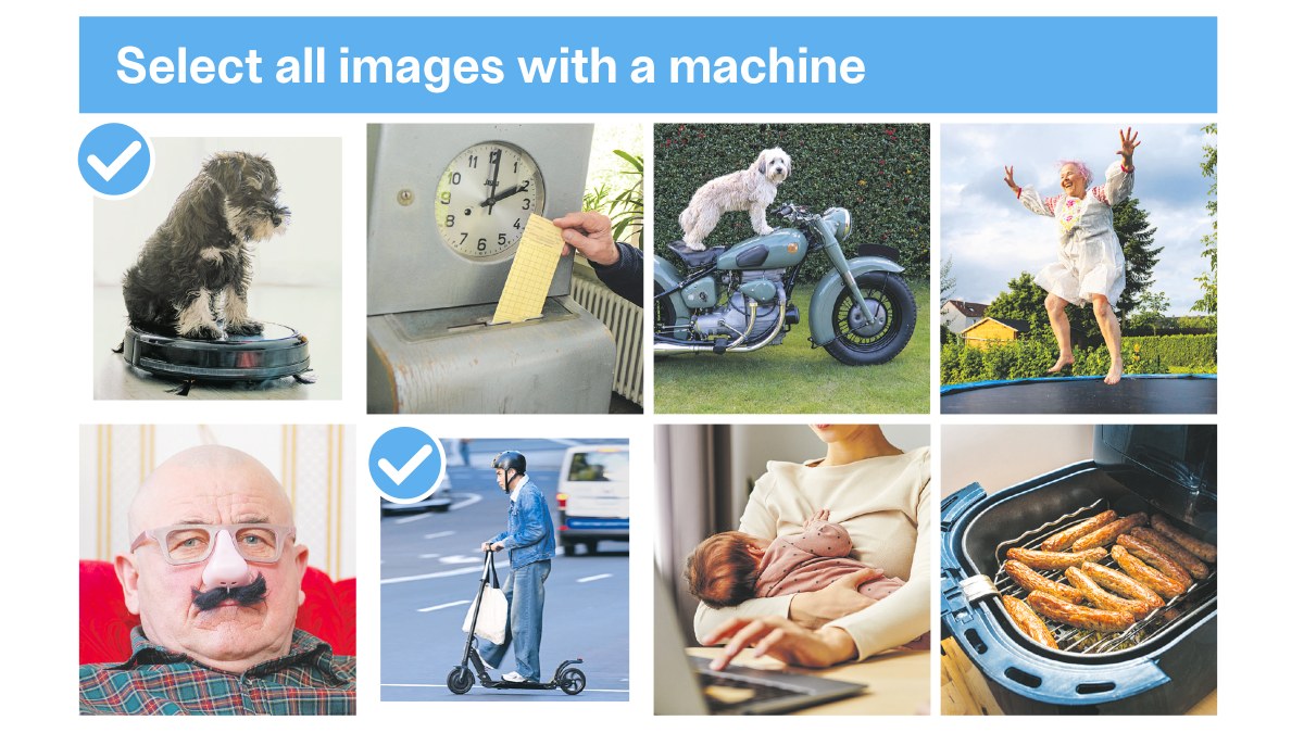 Wieso muss ich eigentlich ständig blöden Maschinen beweisen, dass ich keine Maschine bin? Indem ich blöde, maschinengenerierte Vierecke US-amerikanischer Stadtversteppungen mit Motorrädern oder Ampeln anklicke? Wieso lasse ich mich herumkommandieren von Maschinen?