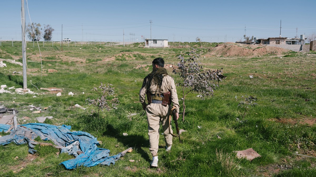 Gerade sind hier drei iranische Drohnen abgestürzt: Ein Peschmerga-Kämpfer in Erbil, Irakisch-Kurdistan, 3. März 2026