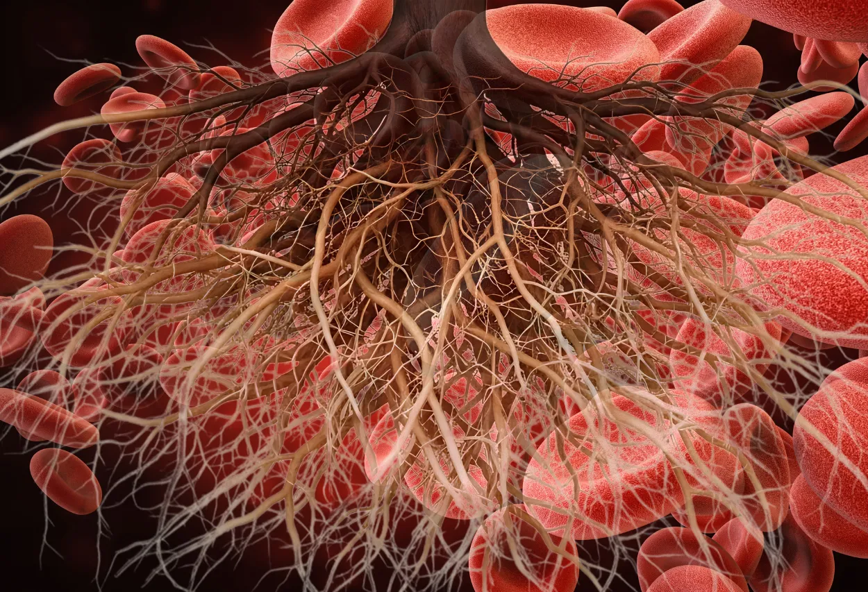 Wenn dieses Gleichgewicht gestört ist, kann das Blut dickflüssig werden – oder sich verflachen. Wenn sich die Zellen zu verklumpen beginnen, bilden sich Mikrogerinnsel. Die Kapillaren werden verstopft und die Sauerstoffversorgung sinkt. Gewebe und Organe beginnen zu leiden, lange bevor sich auf den Bildern etwas Dramatisches zeigt.
