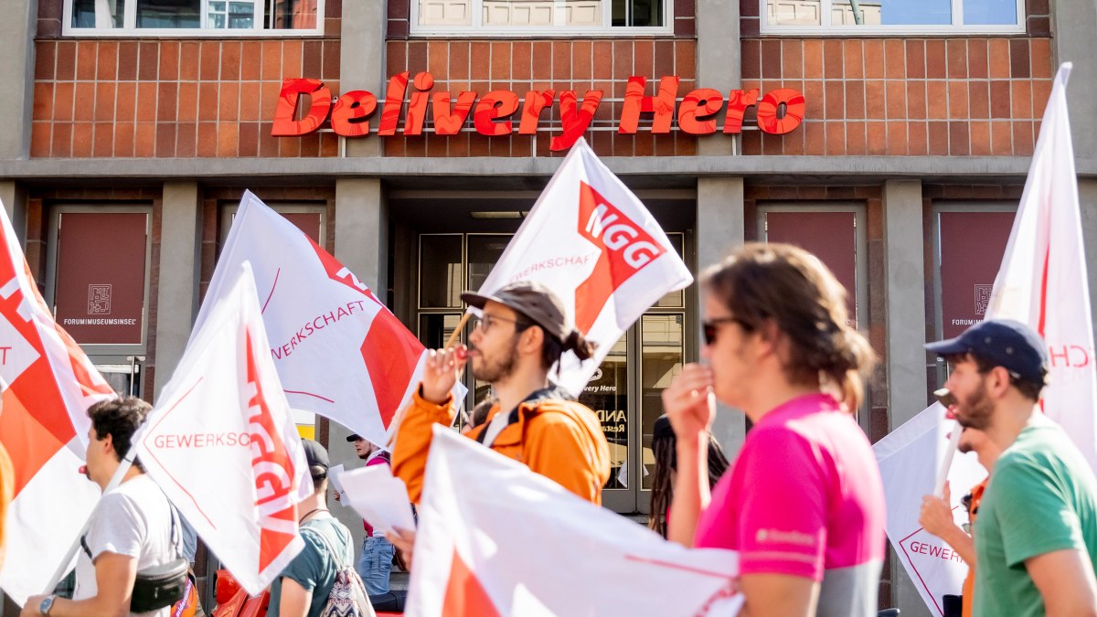 Beschäftigte von Essenslieferdiensten protestieren in Berlin gegen schlechte Arbeitsbedingungen