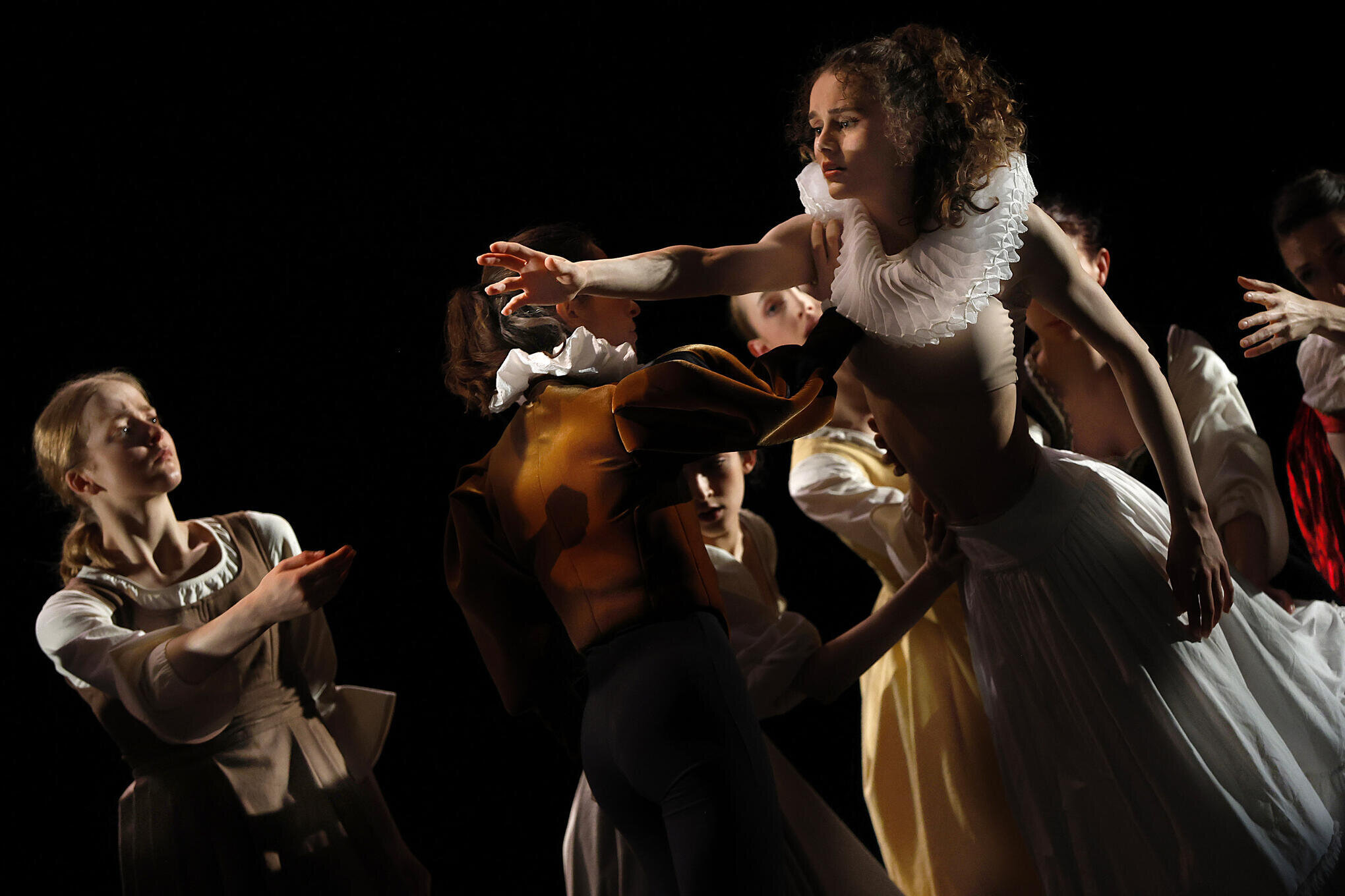 Erst war er arm, dann war er gefragt, malte für Kardinäle, durchlebte aber auch Trinkgelage, Prügeleien, traf sich mit Huren, brachte einen Menschen um, wurde aus Rom verbannt, wollte wieder zurück, starb fern mit nur 38 Jahren. Warum der 1. Akt mit „Was ist das für ein Geräusch?“ überschrieben ist und der 2. mit „Gehäutet“, erschließt sich nicht unweigerlich. Bouché will von den prachtvollen Bi…