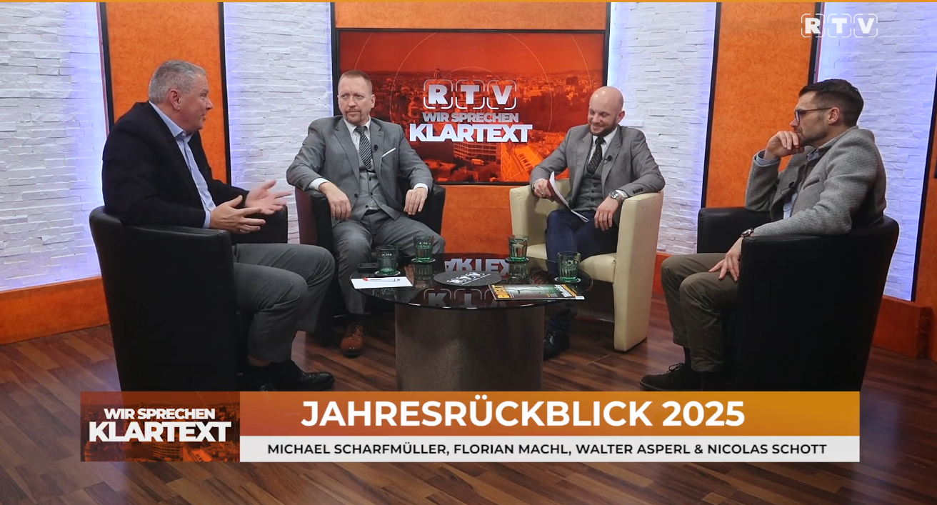 Im RTV-Jahresrückblick mit Chefredakteur Nicolas Schott waren Info-Direkt-Chefredakteur Michael Scharfmüller, Report24-Chefredakteur Florian Machl und Unzensuriert-Herausgeber Walter Asperl zu Gast und zogen Bilanz über das vergangene Jahr – und in dieser Zeit ist auch für die alternativen Medien einiges passiert.