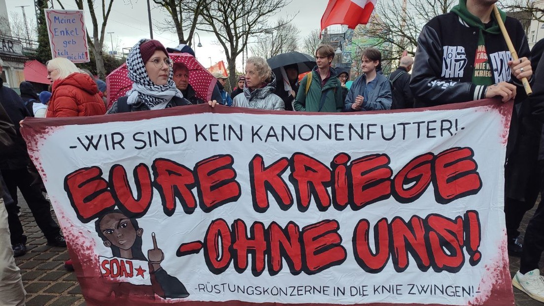 Stattdessen wolle Deutschland selbst einen Krieg vorbereiten, und nur dafür brauche es wie angekündigt eine Armee mit 460.000 Soldaten, so der Friedensaktivist von der SDAJ. Bei der Aufrüstung gehe es nicht um das Wohl der Menschen in diesem Land, es gehe einzig und allein um Profite für Konzerne.
