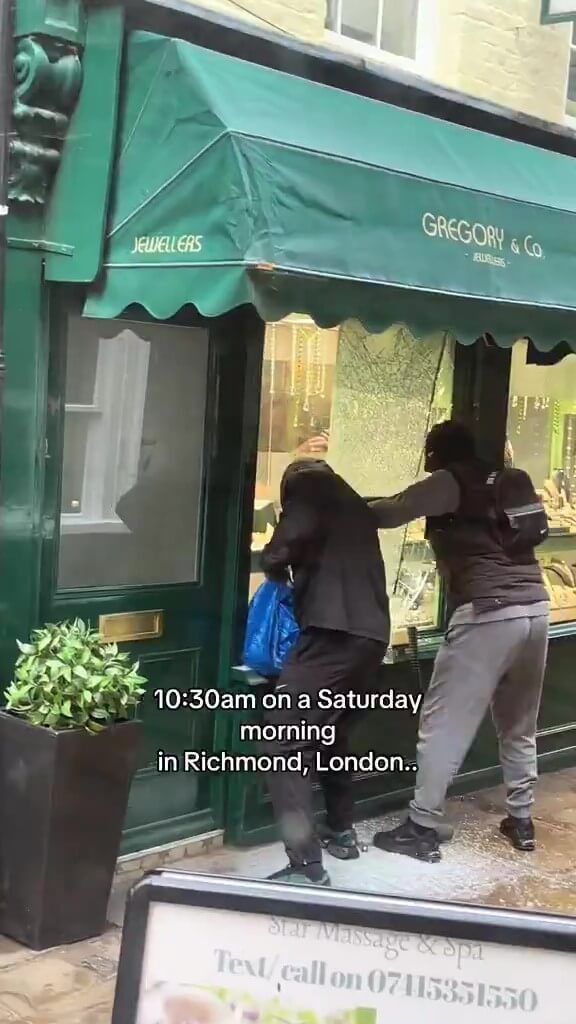 Die Normalität einer von Polizei und Nachbarn überwachten Gegend, in der Kriminelle schneller gestellt und verhaftet werden, sie ist nicht mehr vorhanden. Ladendiebe und Räuber gehen in aller Selbstverständlichkeit ihrem „Gewerbe“ nach, schlagen, wie im folgenden Video von gestrigen Samstag, am hellichten Tag die Schaufester von Juwelliergeschäften ein und stehlen die Auslagen.