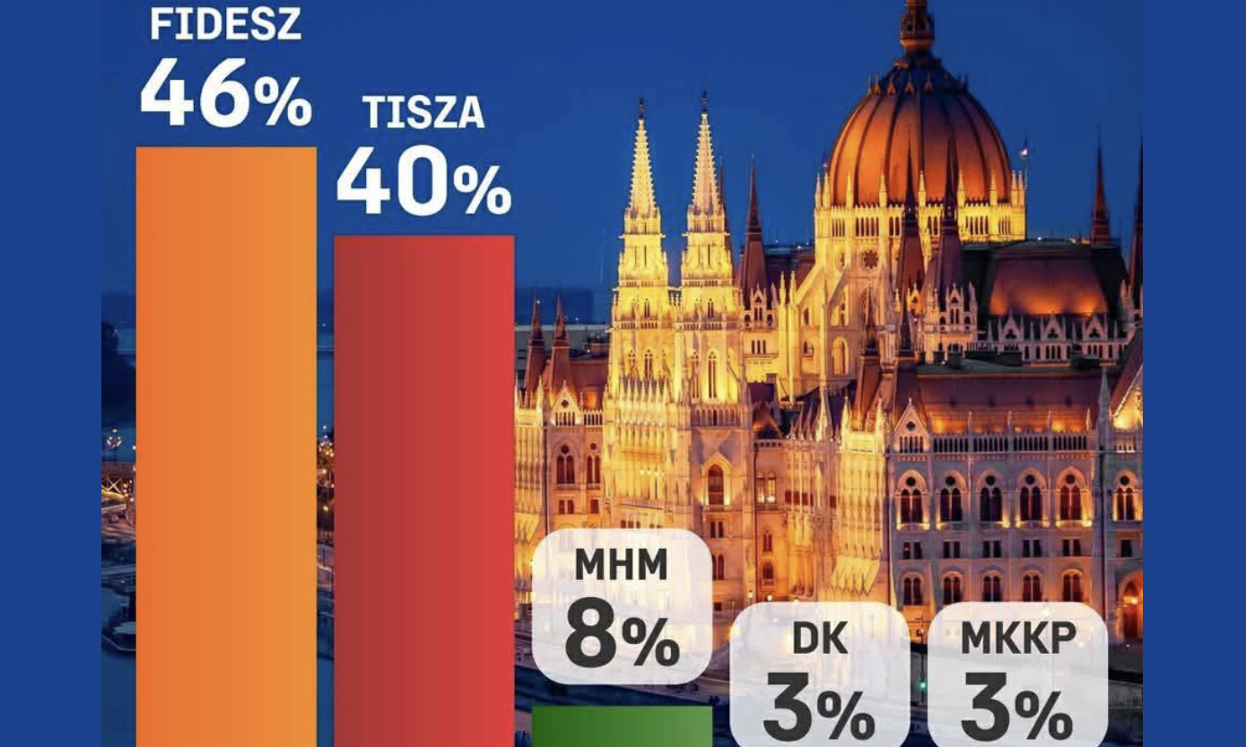 Laut dem – zugegeben regierungsfreundlichen – Institut Nézőpont Intézet liegt Orbán zwei Wochen vor dem Urnengang sechs Prozentpunkte vor seinem Herausforderer Magyar. Fidesz würde demnach auf 46 Prozent der Stimmen kommen, Tisza auf 40 Prozent. Ungarns Verteidigungsminister Szalay-Bobrovniczky kommentierte dieses Ergebnis mit den Worten: